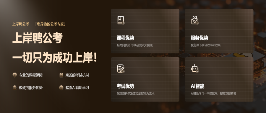 上岸鴨公考,高頓旗下公職教育品牌,20+個省市開設培訓中心?!白屆恳粋€學員都能成功上岸”是上岸鴨公考一直秉持的目標。從公考學習的核心需求出發,堅持研發真正適合公考人群的課程產品和教學模式。